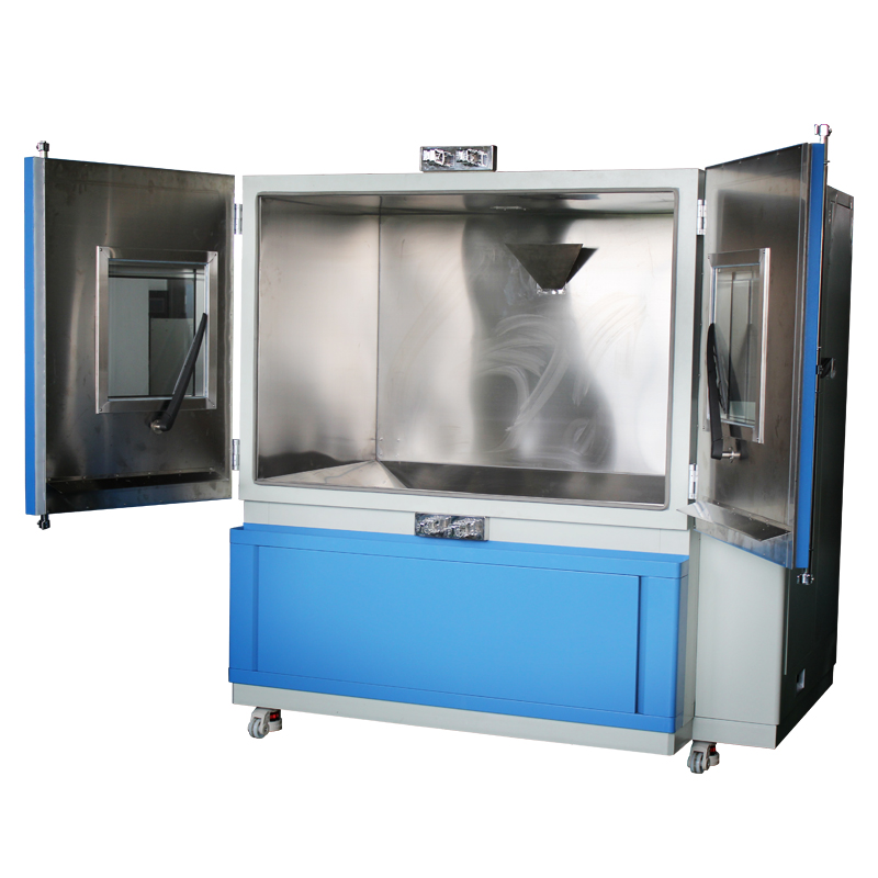 大型砂塵試驗箱適用于檢測產品的外殼密封性能,主要用于外殼防護等級標準中規定的IP5X和IP6X兩個等級的試驗。